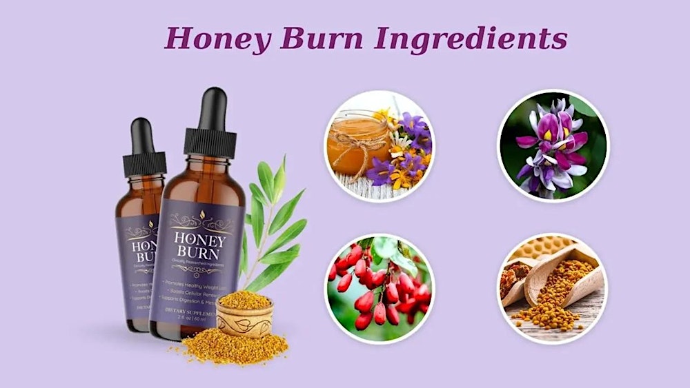 HoneyBurn contains a proprietary blend of Kudzu extract, raspberry extract, olive leaf extract, berberine, holy basil, royal jelly, propolis, and bee bread infused into organic southern honey.
